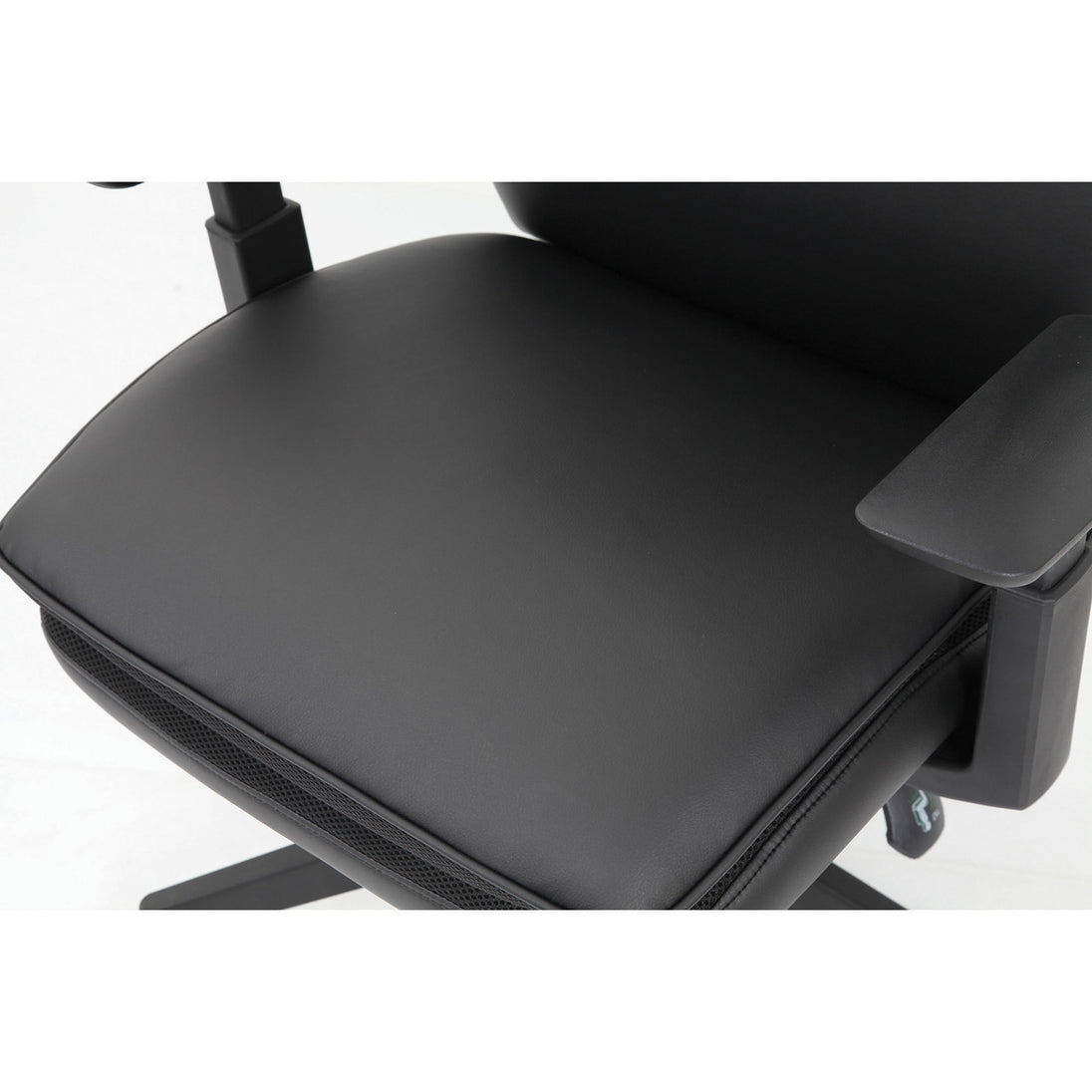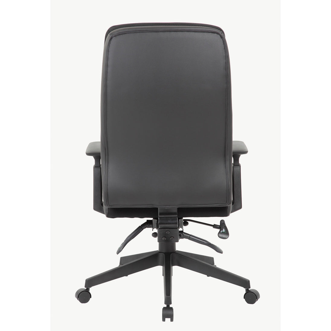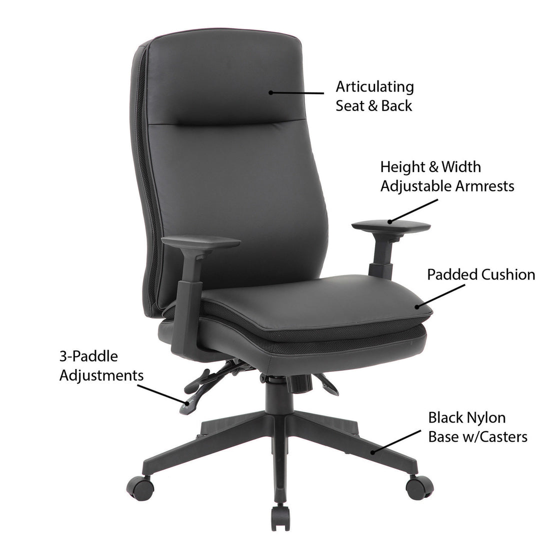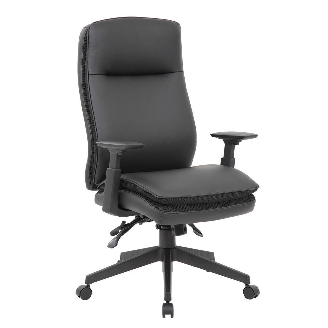 This modern high back executive task chair brings comfort and stability to any office environment. It features beautiful and durable Caresoft Plus upholstery and high-back styling with exemplary lumbar support & height adjustable arms. In addition, the chair features a pneumatic gas lift seat height adjustment, adjustable tilt tension control and a multi-function 3 paddle mechanism Its high crown large 27” 5 star nylon base provides stability while affording plenty of mobility thanks to its five hooded double wheel casters.
