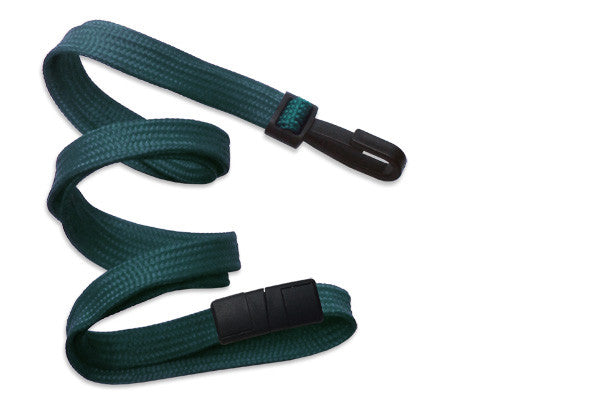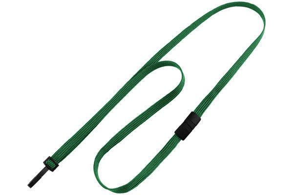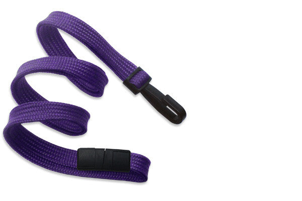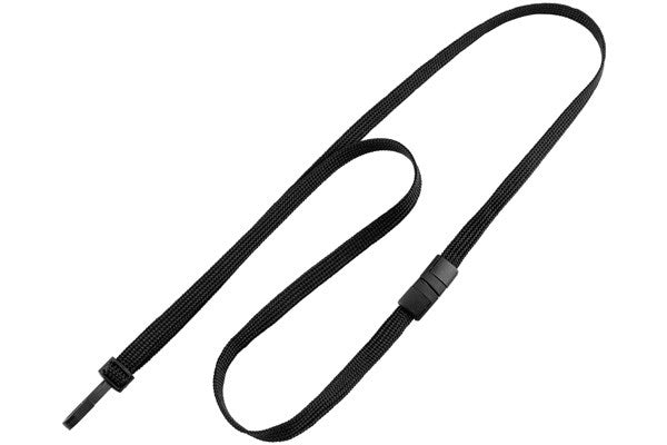 Polypropylene flat-braid woven lanyard, slim design. Narrow, twist-free plastic hook end fitting is good for customers looking for something sleek. Includes a breakaway. 36" in length. Perfect as a simple ID card-carrying solution.