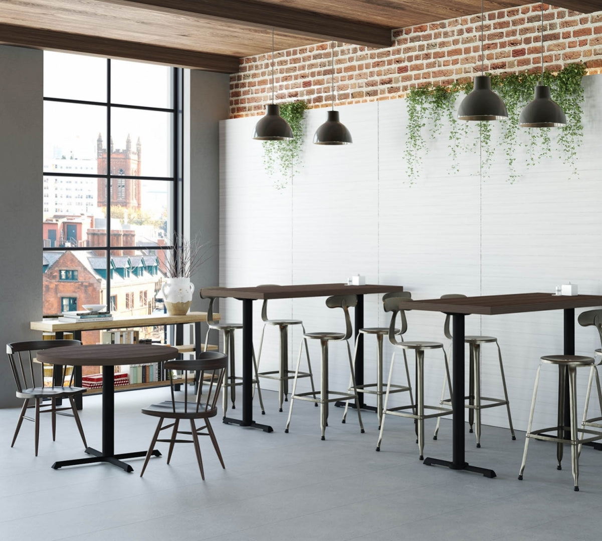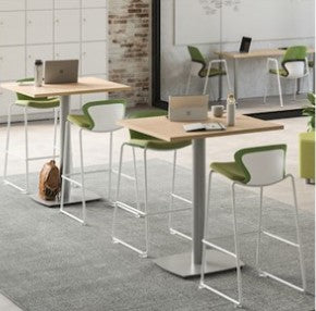 Break Rooms can be designed with a multiple number of tabletop shapes and sizes. There is also numerous base options too. Here's a sampling of what we have to offer. Need help with space planning? Call us today at 508-839-6144.